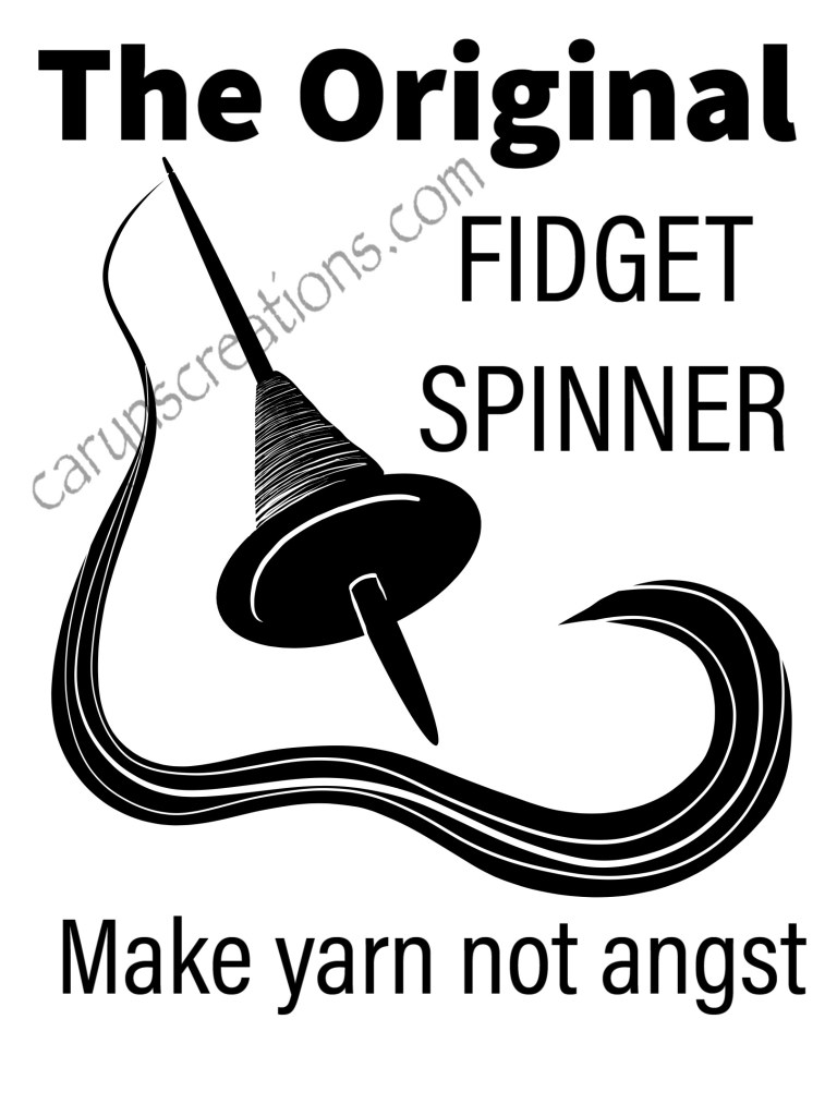I made a black and a white print version, and have loaded them up on Redbubble (click links to go to the designs). Mine are already ordered. A tshirt to wear when I’m walking the neighborhood, and a canvas bag to hold my spinning stuff.